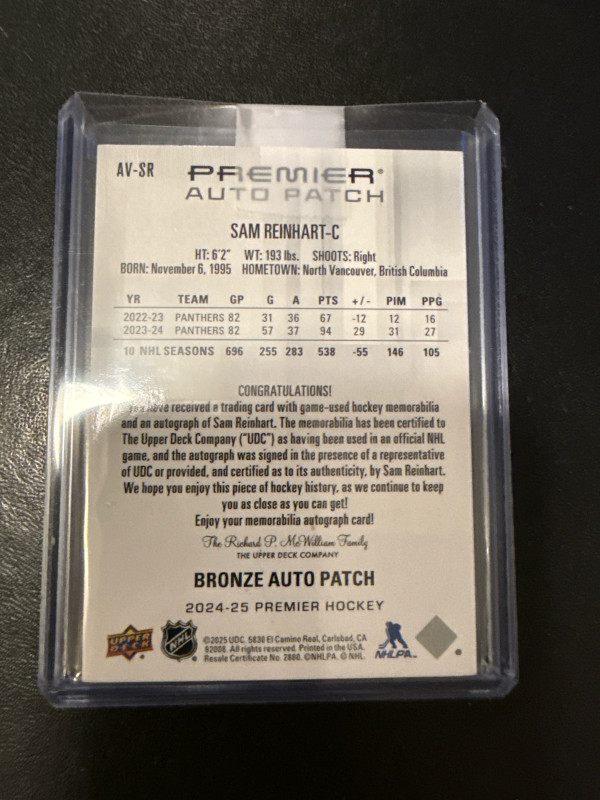 2024-25 UD Premier Auto Patch Sam Reinhart /49