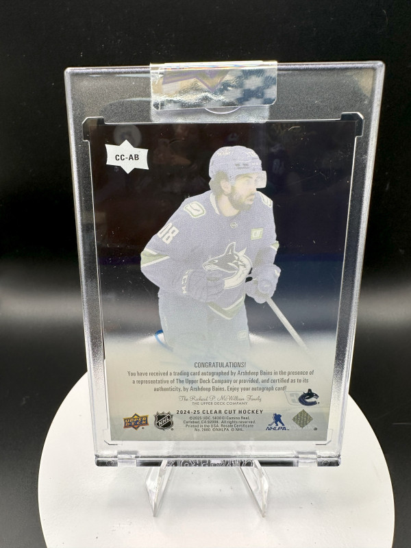 2024-25 Upper Deck Clear Cut Arshdeep Bains Rookie Auto #CC-AB Vancouver Canucks