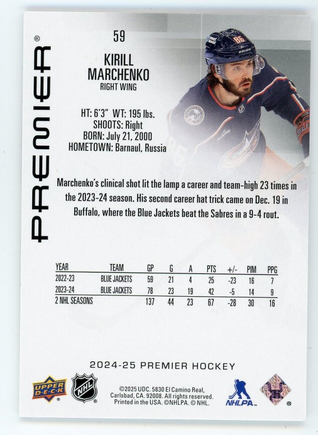 2024-25 Upper Deck Premier #59 Kirill Marchenko Rookie/299