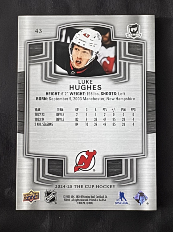 2024-25 UPPER DECK THE CUP BASE CARD #43 Luke Hughes 141/249