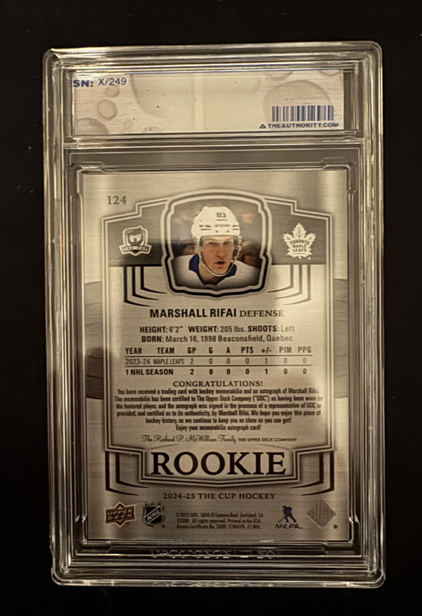2024-25 Upper Deck The Cup MARSHALL RIFAI #124 Rookie Patch Autograph 178/249