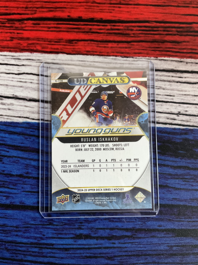 You are purchasing a 2024 Upper Deck Series 1 UD Canvas Young Guns Ruslan Iskhakov. You will receive the exact item in the photographs. Thank you for looking.