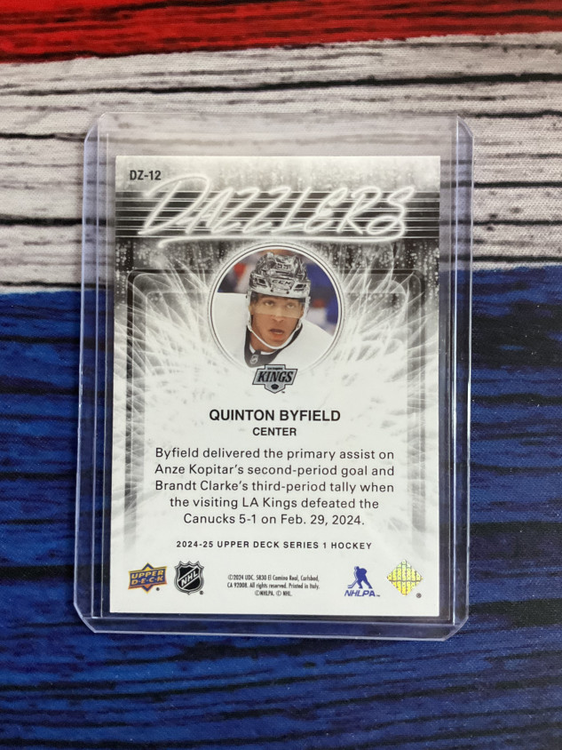You are purchasing a 2024 Upper Deck Series 2 Dazzlers Quinton Byfield #DZ-12 Orange. You will receive the exact item in the photographs. Thank you for looking.