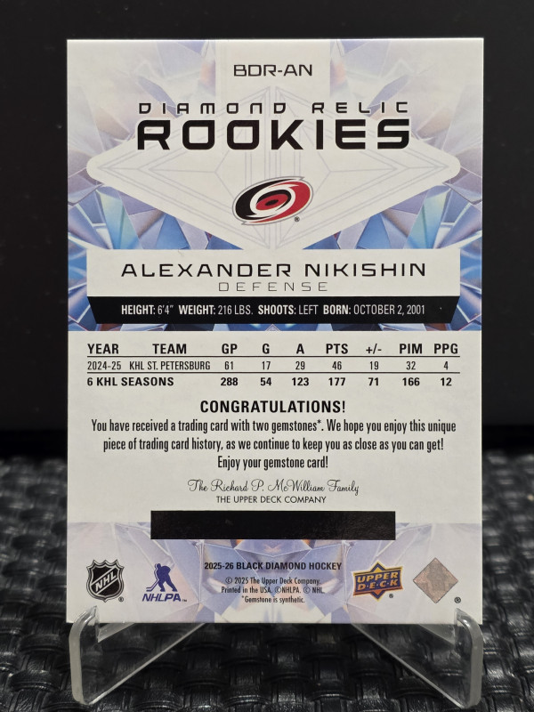 2025-26 UD Black Diamond Alexander Nishikin Diamond Relic Rookies (DOuble Daiamond) 92/99