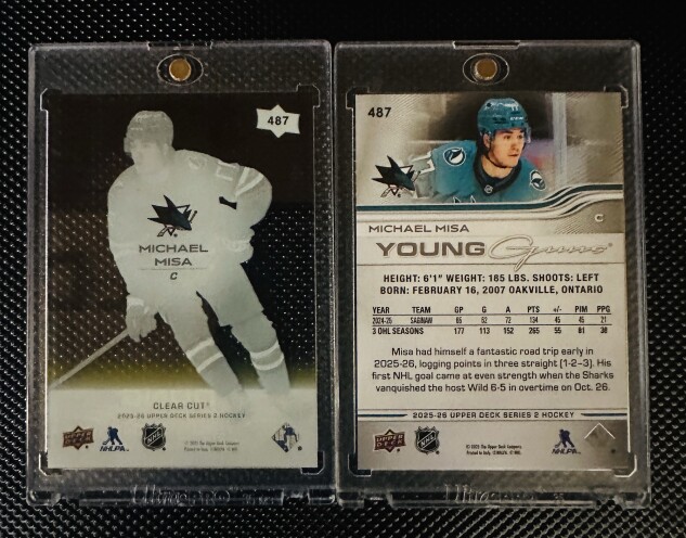 25-26 UD Series 2 Michael Misa Young Guns & Young Guns Clear Cut SSP RC