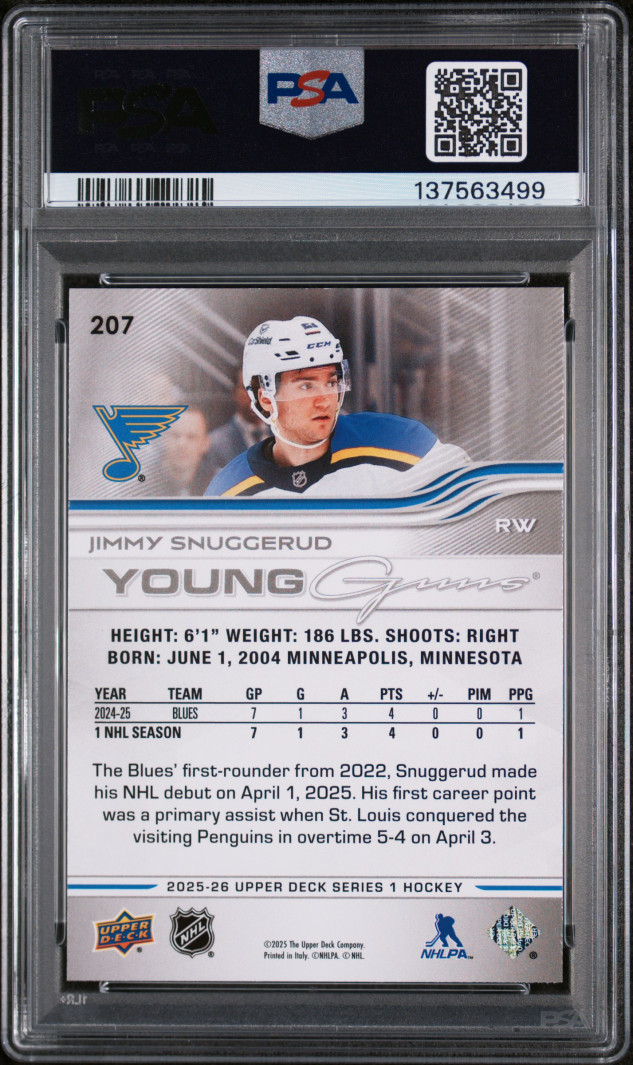 2025 Upper Deck Jimmy Snuggerud Young Guns PSA 9 Mint