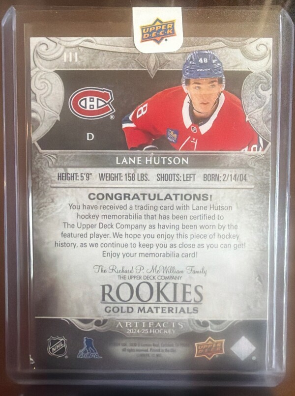 24/25 Artifacts Rookie gold materials Lane Hutson. Redemption lll