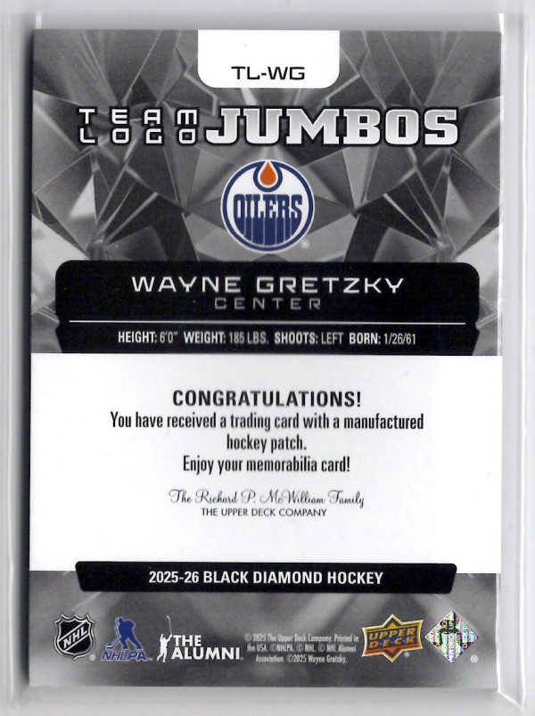 25/26 BLACK DIAMOND LEGENDS TEAM LOGO JUMBOS #TL-WG WAYNE GRETZKY