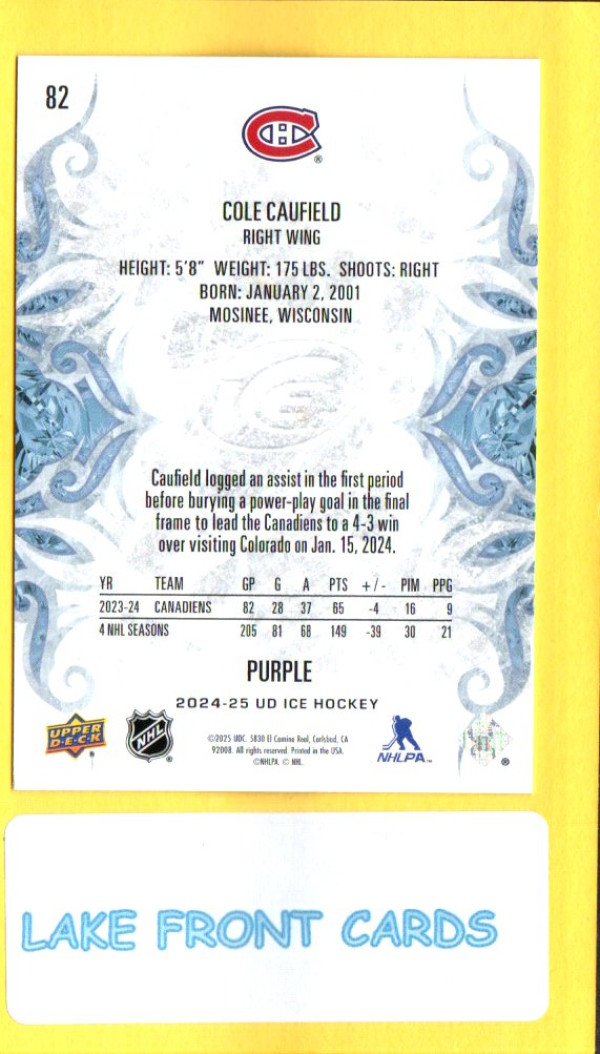 Cole Caufield [Purple] #82 2024 Upper Deck Ice