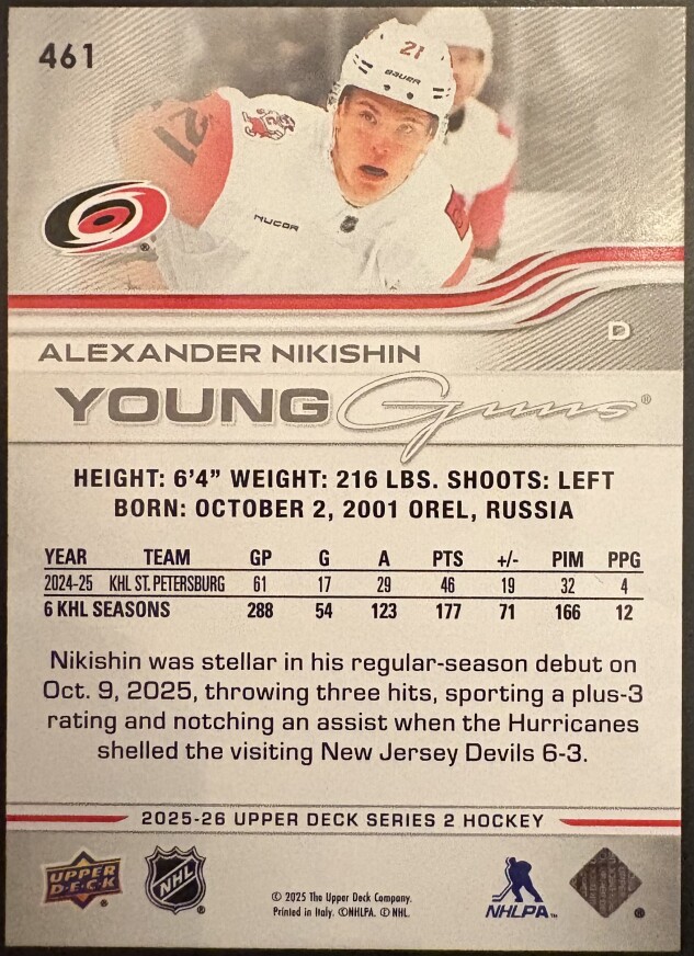 ALEXANDER NIKISHIN YOUNG GUNS #461 - 2025-26 UPPER DECK SERIES 2