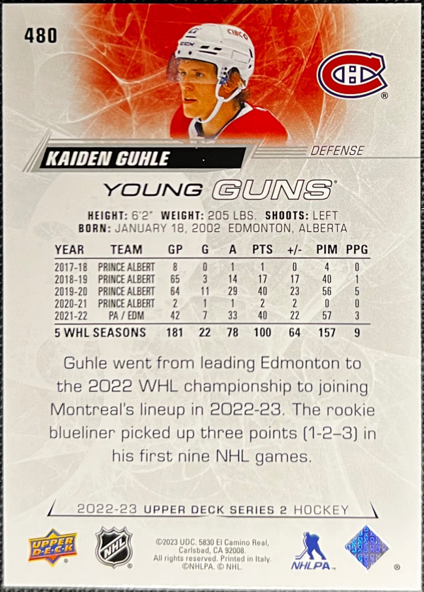 Kaiden Guhle – Upper Deck Young Guns (Montreal Canadiens)