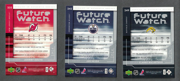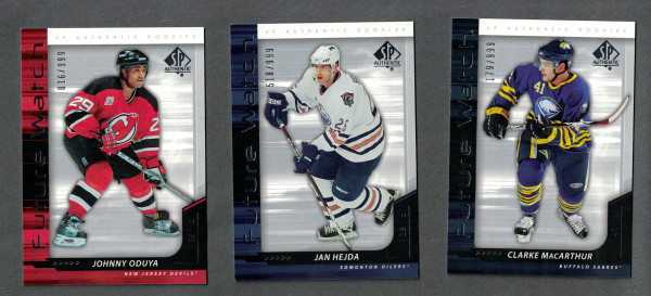 Lot of 3: 2006-07 Upper Deck Sp Authentic Future Watch Johnny Oduya 816/999, Jan Hejda 518/999, Clarke MacArthur 179/99 Rookies