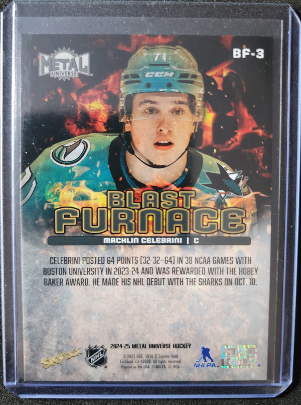 Macklin Celebrini Skybox Metal Universe Blast Furnace Rookie