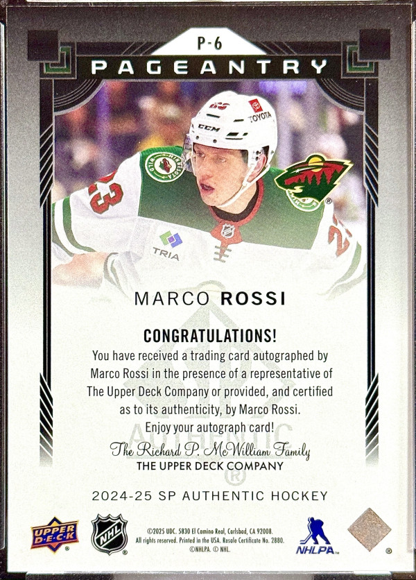 Marco Rossi 2024-25 SP Authentic Pageantry Auto