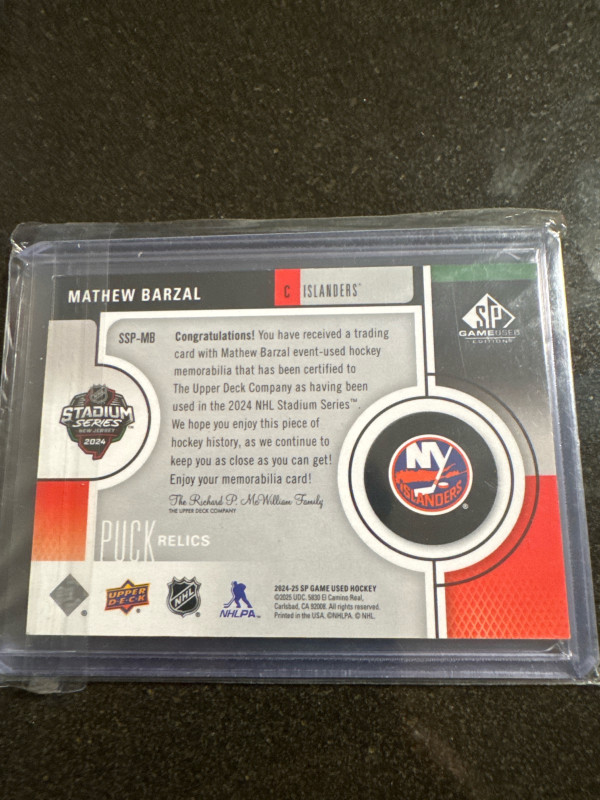 Mathew Barzal 2024 stadium series puck relics