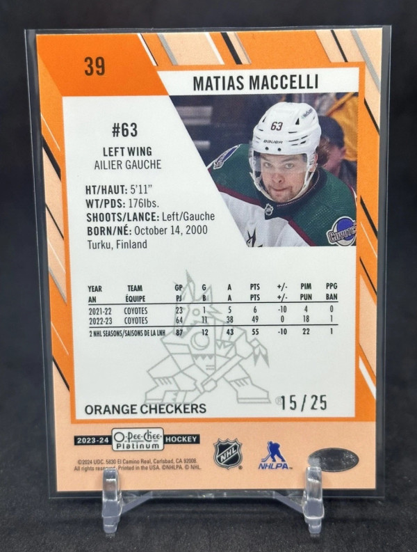 Matias Maccelli 2023-24 Upper Deck O-Pee-Chee Platinum Orange Checkers /25 #39
