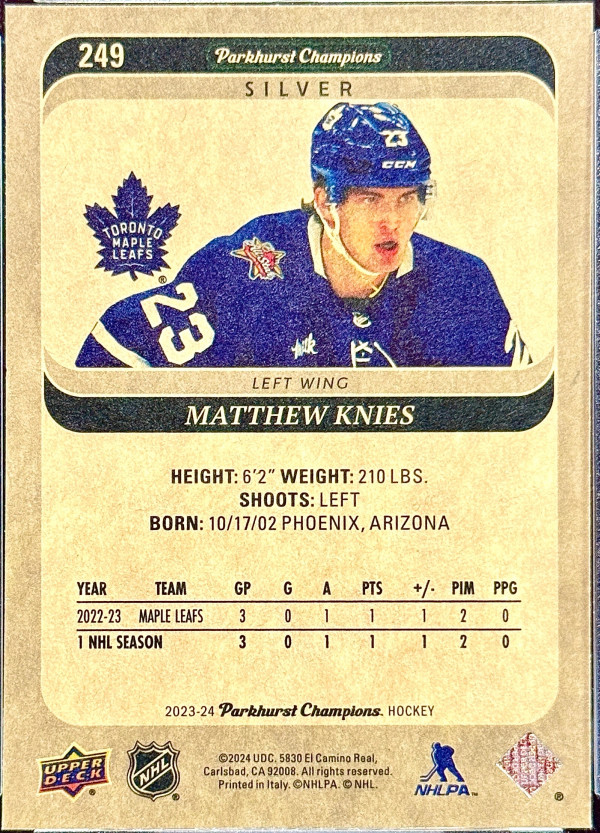 Matthew Knies 2023-24 Parkhurst Champions SP Rookie Silver RC #249