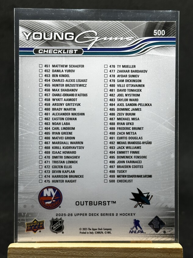Matthew Schaefer Michael Misa 2025-26 Series 2 Young Guns Outburst