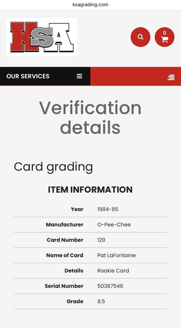 Pat Lafontaine 1984-85 O-Pee—Chee Rookie Card - KSA 8.5 (Near Mint/Mint+). Card Number 129. Clean copy ✅✅