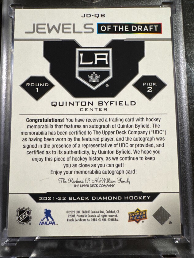 Quinton Byfield jewels of the draft 3 color patch auto /99