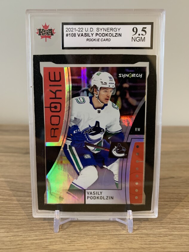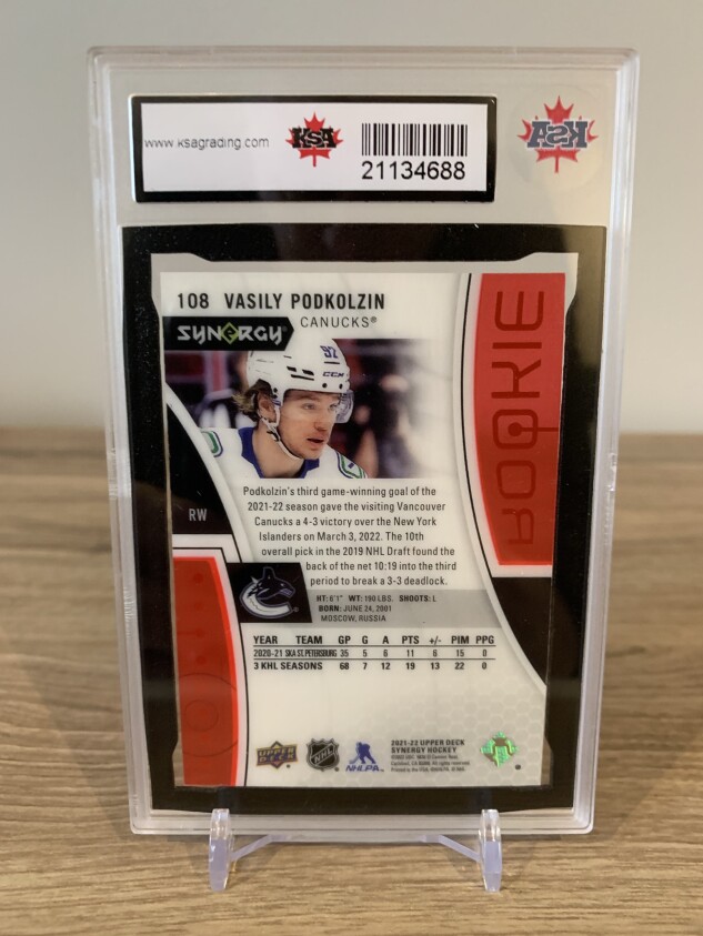 Vasily Podkolzin 2021-22 Upper Deck Synergy Rookie Card - KSA 9.5 (Near Gem Mint for this Oiler Fan Favourite 🔵🟠 - Card Number 108)
