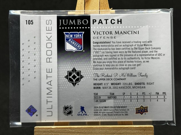Victor Mancini 2024-25 Ultimate Rookies Jumbo Patch Auto /15
