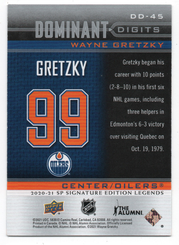 Wayne Gretzky - 2020-21 Upper Deck SP Signature Edition Legends Dominant Digits #DD-45