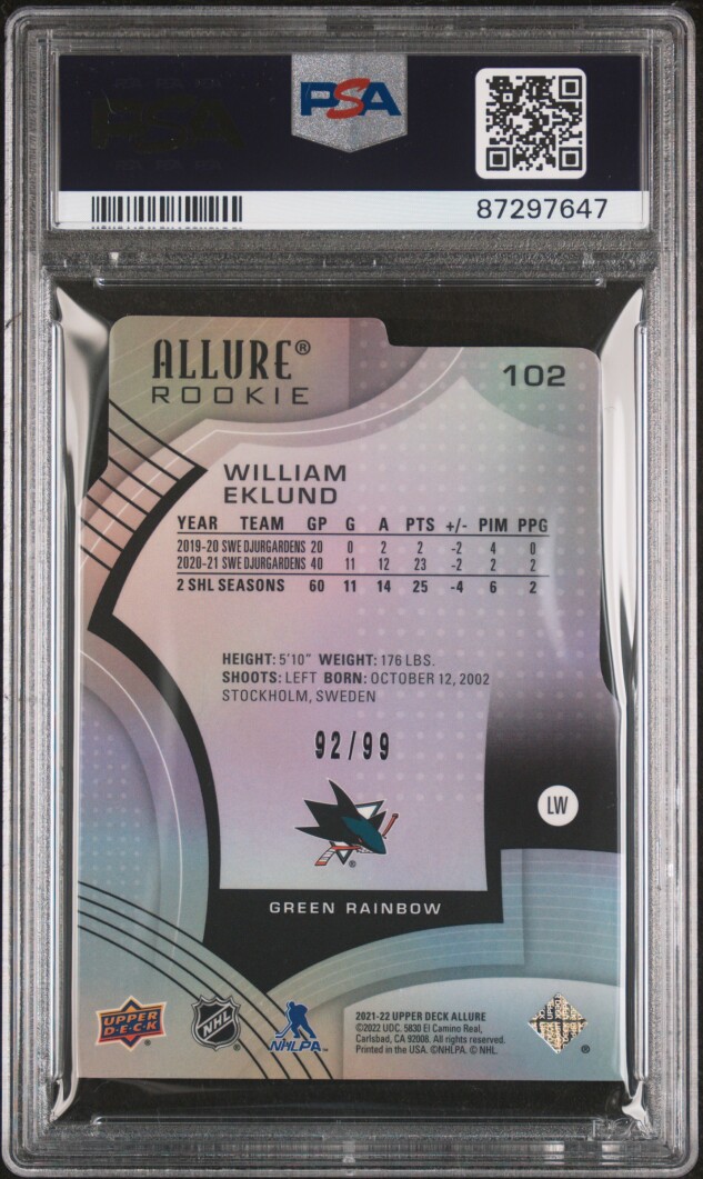 William Eklund Allure Rookie Green Rainbow /99 PSA 10