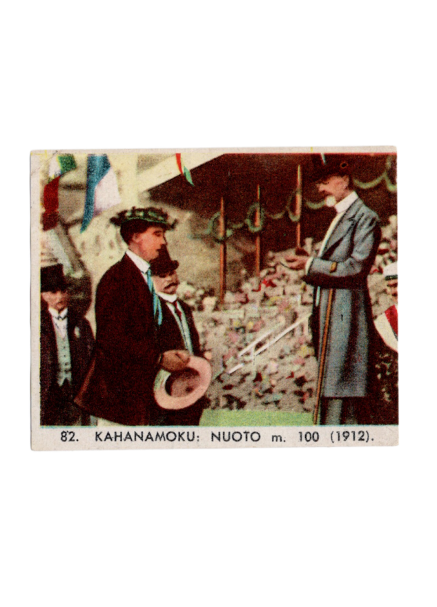 A very rare card of legend surfer Duke Kahanamoku from the Casa Editrice Filalbo Delle Olimpiadi Italian set.