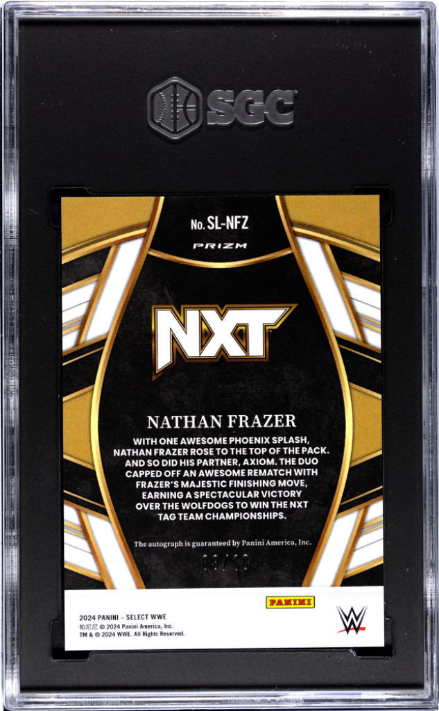You are purchasing a 2024 Panini Select Wwe Nathan Frazer #SL-NFZ SGC 8.5. You will receive the exact item in the photographs. Thank you for looking.