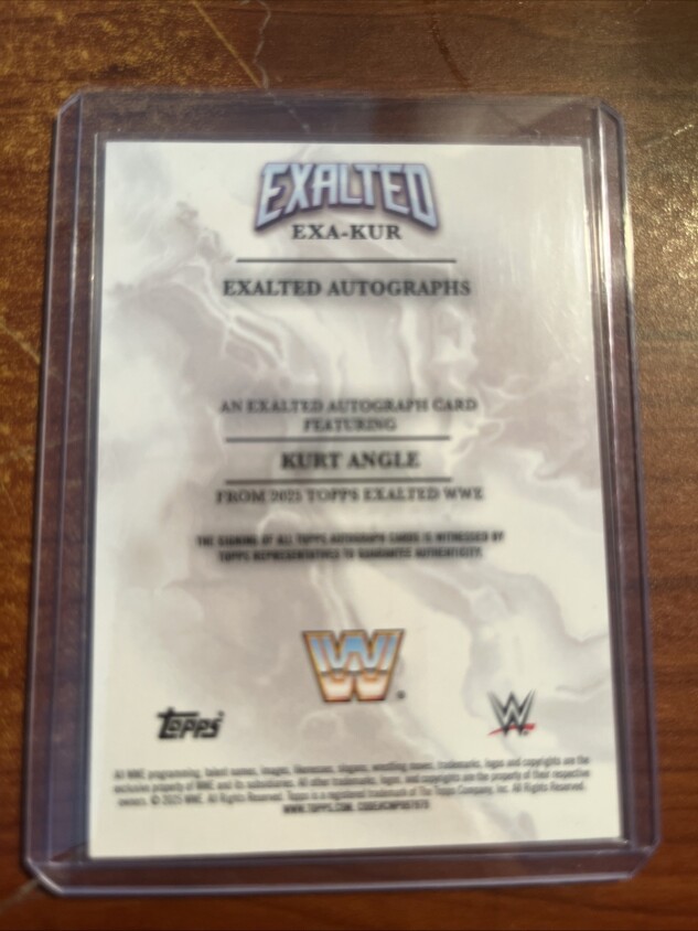 You are purchasing a 2025 Topps Exalted Kurt Angle #EXA-KUR Autograph Insert Topps. You will receive the exact item in the photographs. Thank you for looking.