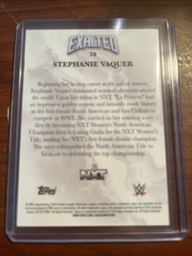 You are purchasing a 2025 Topps Exalted WWE Stephanie Vaquer #38 [Base] Base Set Topps. You will receive the exact item in the photographs. Thank you for looking.