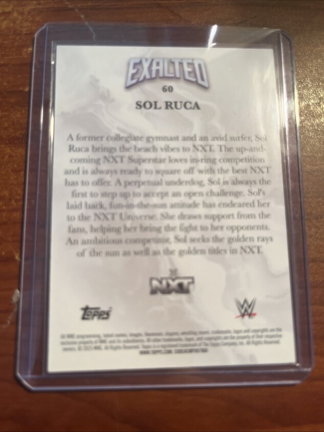 You are purchasing a 2025 Topps WWE Exalted Sol Ruca #60 Aqua Parallel/Variety Base Set. You will receive the exact item in the photographs. Thank you for looking.