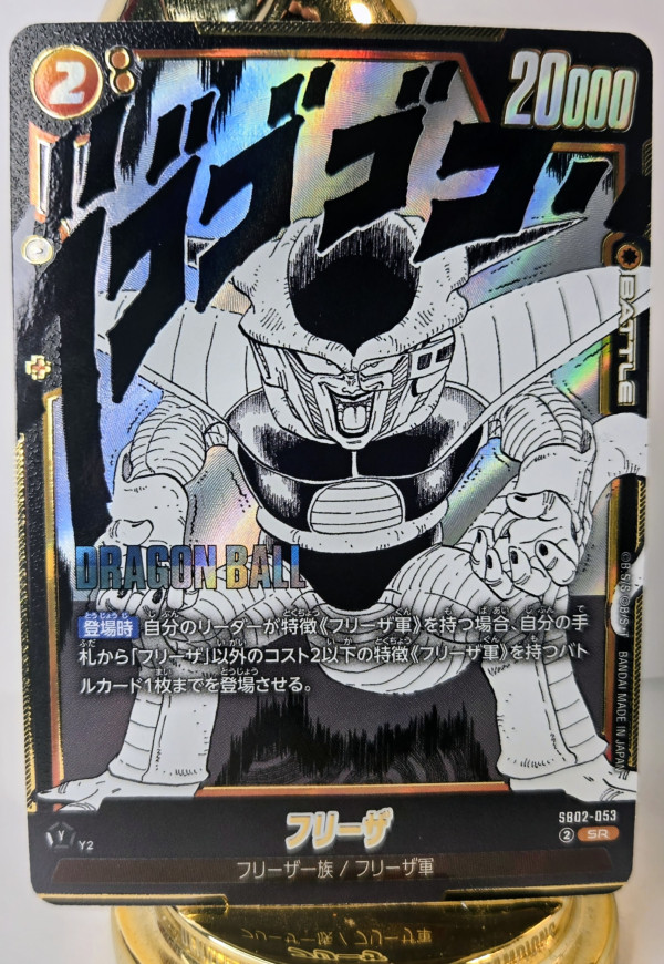 The Frieza card from the Dragon Ball CCG's Fusion World Manga Booster 02 is a highly sought-after collectible as it is considered super rare. This Japanese language card features the character Frieza in a holo finish, adding to its appeal for collectors. Originating from Japan, this card is a valuable addition to any Dragon Ball franchise collection.