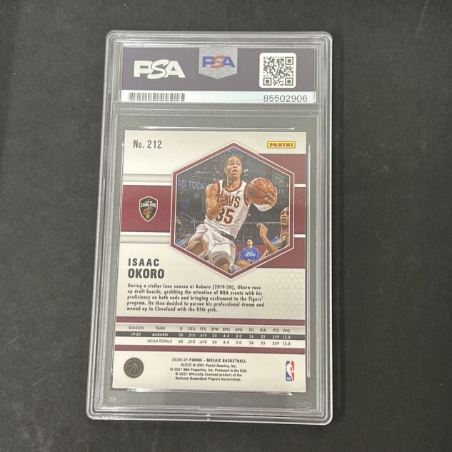 This listing features a 2020-21 Panini Mosaic #212 Rookie Isaac Okoro, professionally PSA authenticated.