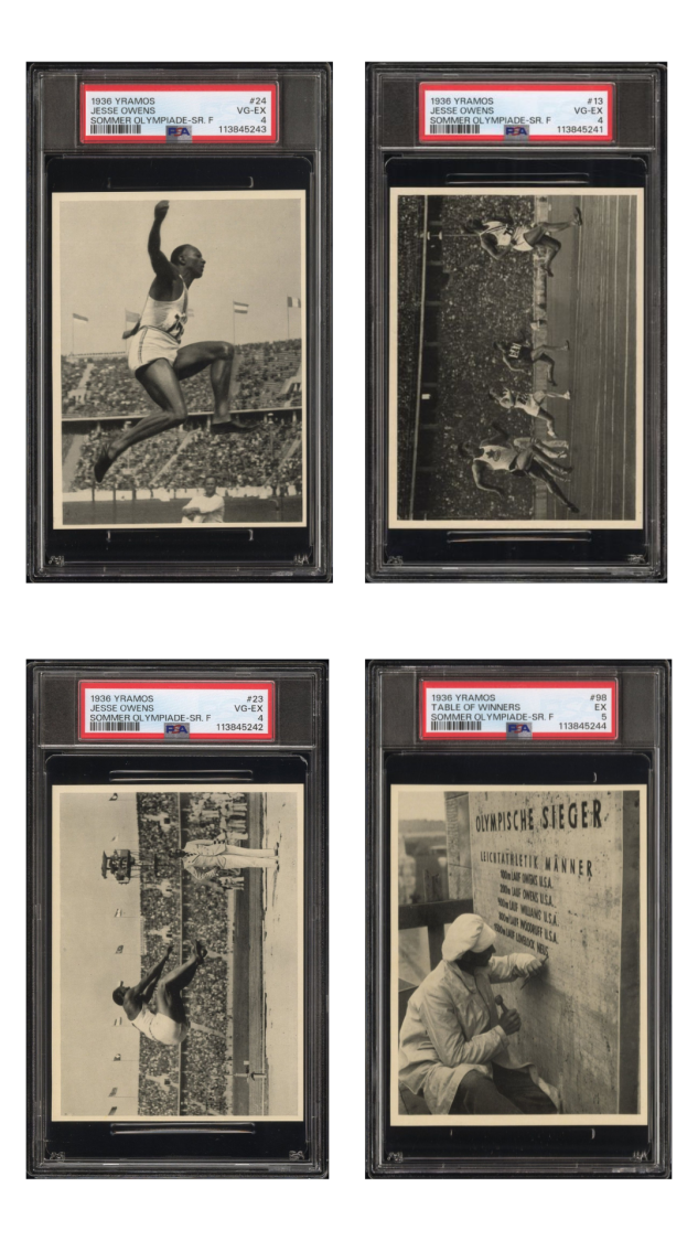 These Yramos cards are some of the rarest Jesse Owens cards from his historic 1936 Olympics games, with very low pops at PSA and they are graded very highly for this particular card set. See info for each particular card below.