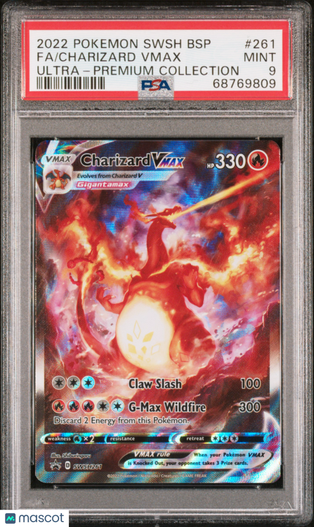 You are purchasing a 2022 Pokemon SWSH Black Star Promo Charizard VMAX #261 - PSA 9. You will receive the exact item in the photographs. Thank you for looking.(Cards with multiple quantities under $20 each, will be the same condition, but not necessarily the exact same copy of the card.)