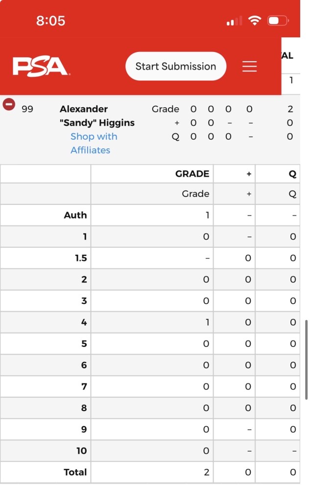 1908 John Sinclair Ltd. Football Favourites Sandy Higgins #99 PSA 4 VGEX (PSA Population 1 of 1, non graded higher).