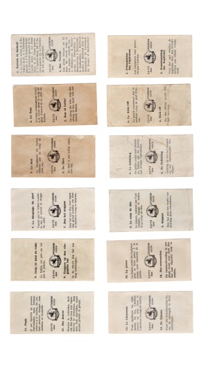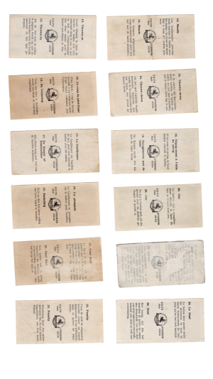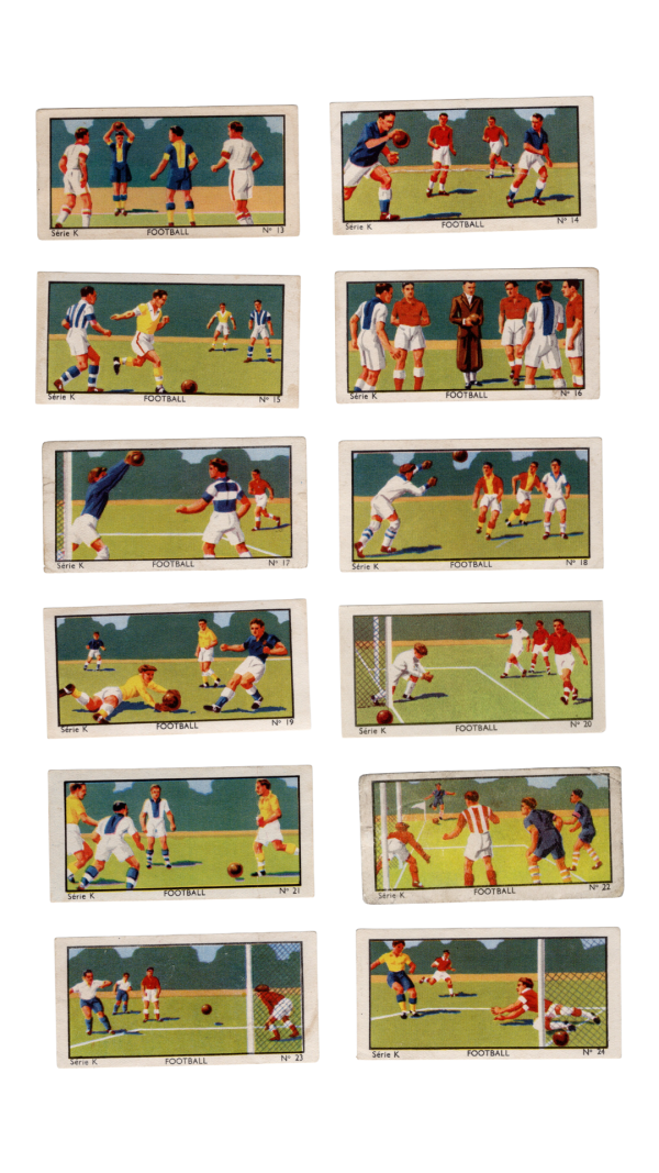 Complete subset of the soccer cards from the 1933 Jacques Chocolat Les Sports Illustres set. These are the Type 2 cards (black text on reverse).