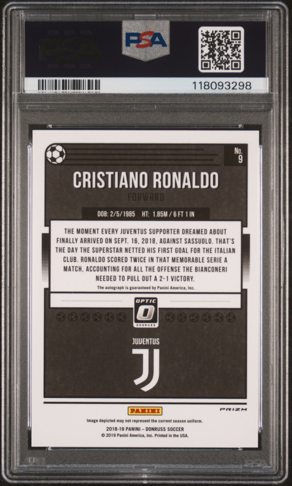 You are purchasing a 2018 Panini Donruss Cristiano Ronaldo #9 Optic Autograph PSA 10. You will receive the exact item in the photographs. Thank you for looking.
