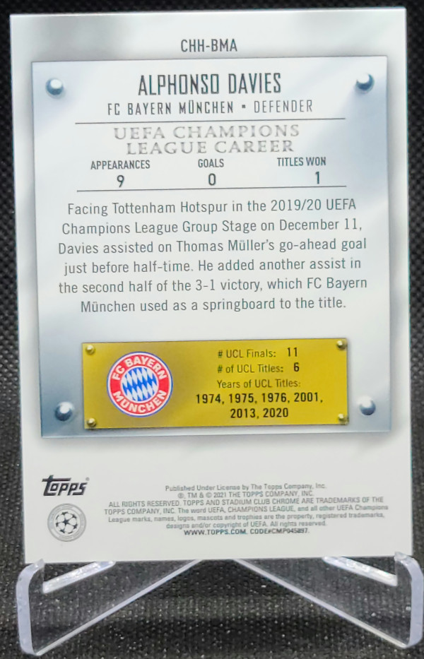 2020-21 Stadium Club Chrome UEFA Champions League Cup Holders Honour #CHHBMA Alphonso Davies