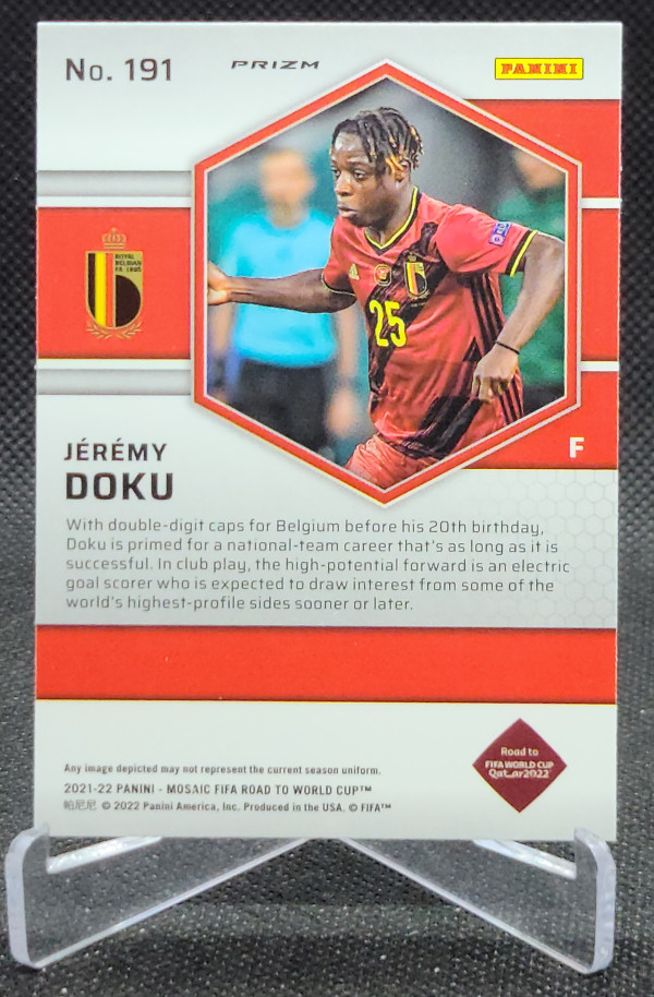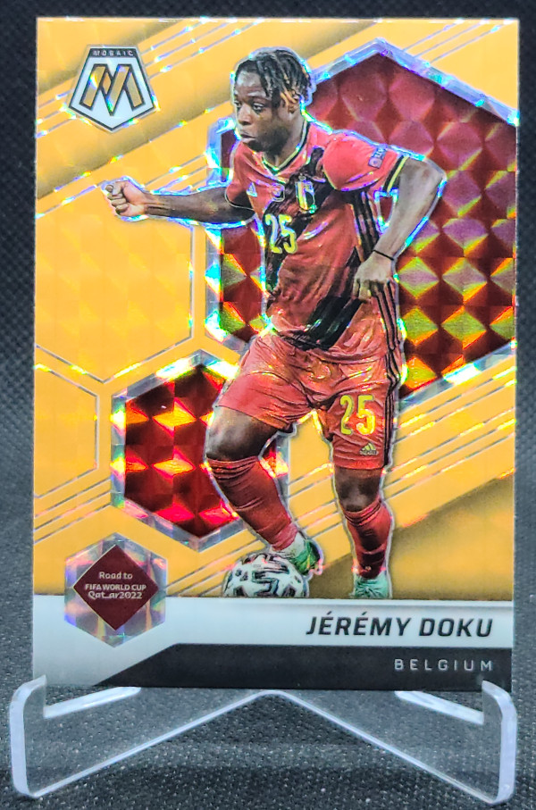 2021-22 Panini Mosaic Road to the FIFA World Cup Qatar Mosaic Orange Fluorescent #191 Jeremy Doku