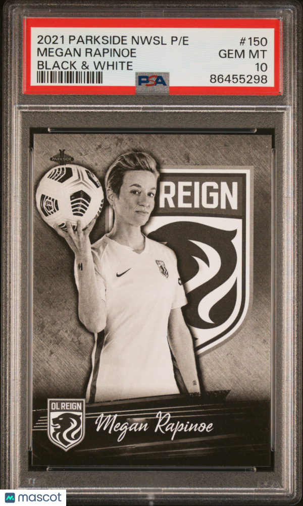 You are purchasing a 2021 Parkside Nwsl Premier Edition Black and White Megan Rapinoe #150 PSA 10. You will receive the exact card in the photographs. Thank you for looking.