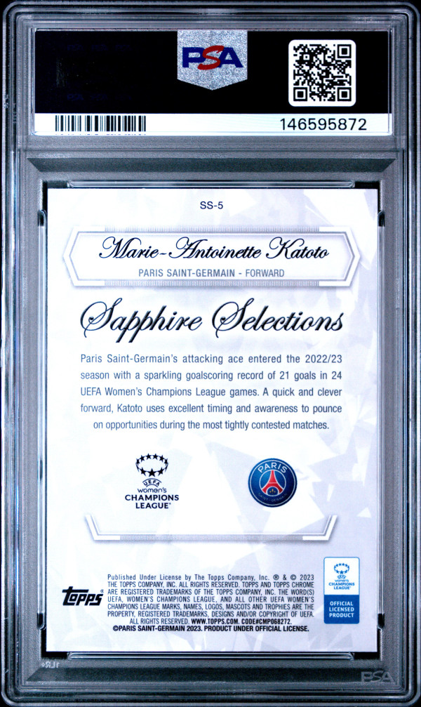 You are purchasing a 2022-23 Topps Chrome Sapphire Edition Sapphire Selections M. Katoto #SS5 PSA 10. You will receive the exact item in the photographs. Thank you for looking.
