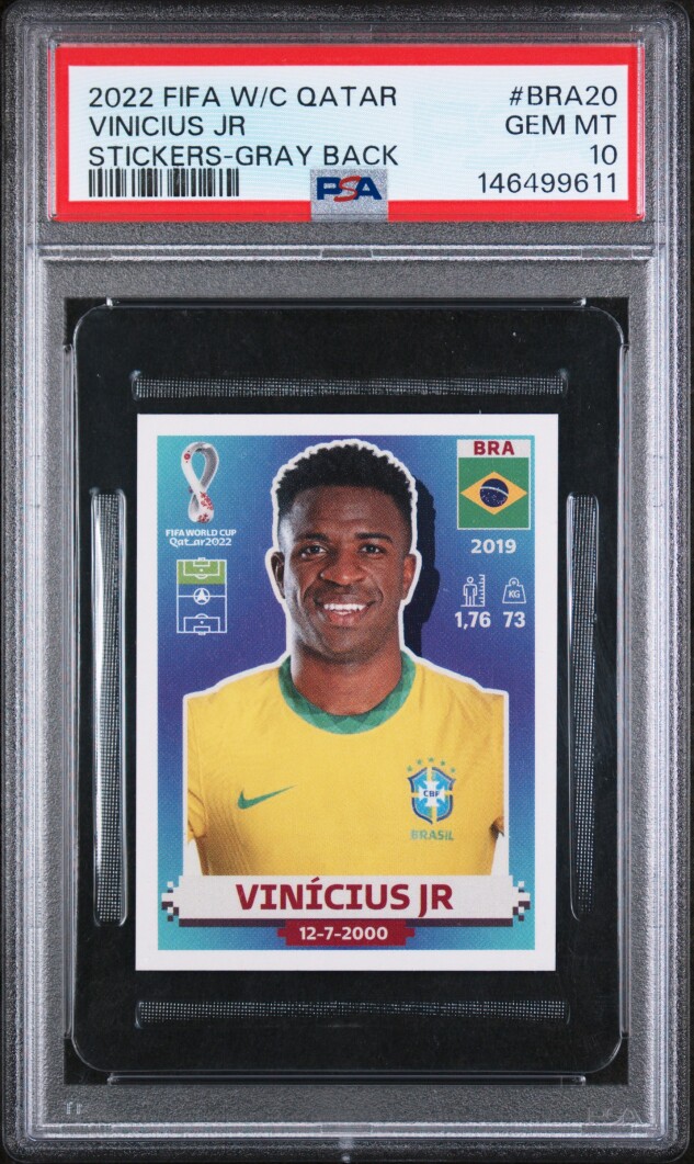 2022 Panini Fifa World Cup Qatar Stickers VINI VINICIUS JR Rare STICKERS-GRAY BACK - GRADED PSA 10 GEM MINT - BRAZIL