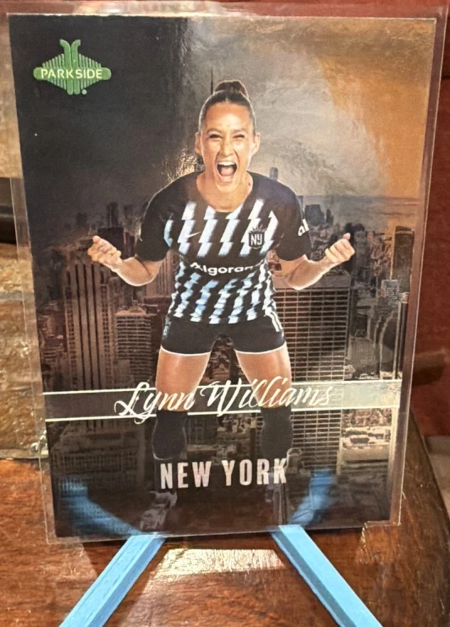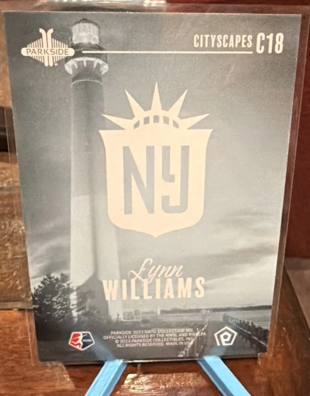 The 2023 Parkside NWSL Vol. 1 trading card featuring Lynn Williams #C18 is a sought-after collectible in the sports memorabilia market. Manufactured by Parkside Collectibles, Inc., this insert card showcases the talented soccer player from NJ/NY Gotham FC in the National Women's Soccer League (NWSL). Part of the Cityscapes set for the 2023 season, this card offers a unique perspective on the player and the team, making it a valuable addition to any sports trading card collection.