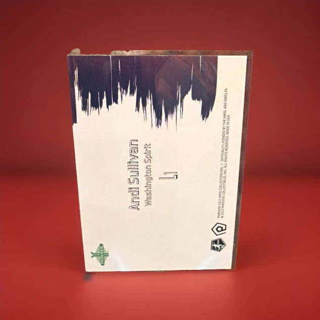 The 2023 Parkside NWSL Vol. 1 trading card featuring Andi Sullivan of the Washington Spirit is a highly sought-after collectible for soccer fans. This luminescent insert card from the Luminescent set is sure to stand out in any collection, showcasing the talented player in a unique and eye-catching design. Produced by Parkside Collectibles, Inc., this card is part of a limited set for the 2023 season, making it a valuable addition to any sports trading card collection.