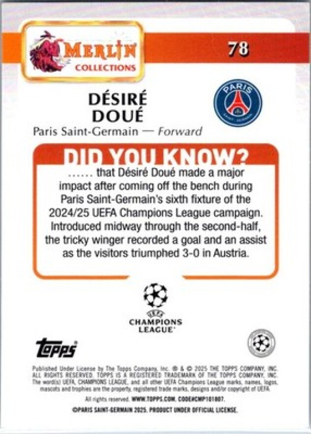 This is a nice example of a 2024-25 Merlin UEFA Club Competitions #78 Désiré Doué