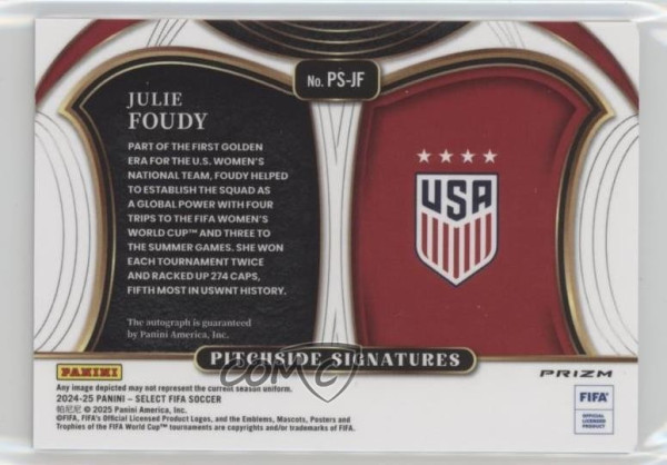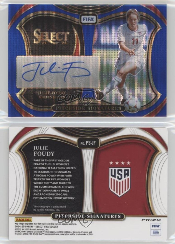 You are purchasing a 2024-25 Panini Select FIFA - Pitchside Signatures - Blue Pulsar P Julie Foudy #PS-JF Blue Pulsar Prizm. You will receive the exact item in the photographs. Thank you for looking.