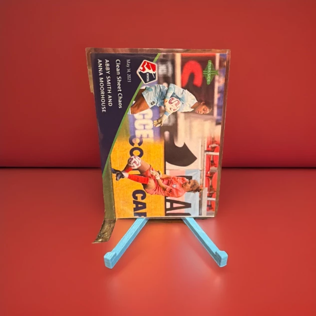 The product is a 2023 Parkside NWSL trading card featuring Abby Smith, who plays for Gotham FC and Orlando Pride. This original card is part of the "Clean Sheet Chaos" set with a limited print run of 417. The card is in standard size made of card stock and is a base parallel/variety, making it a short print. This collectible item is perfect for fans of the National Women's Soccer League looking to add a unique piece to their sports trading card collection.